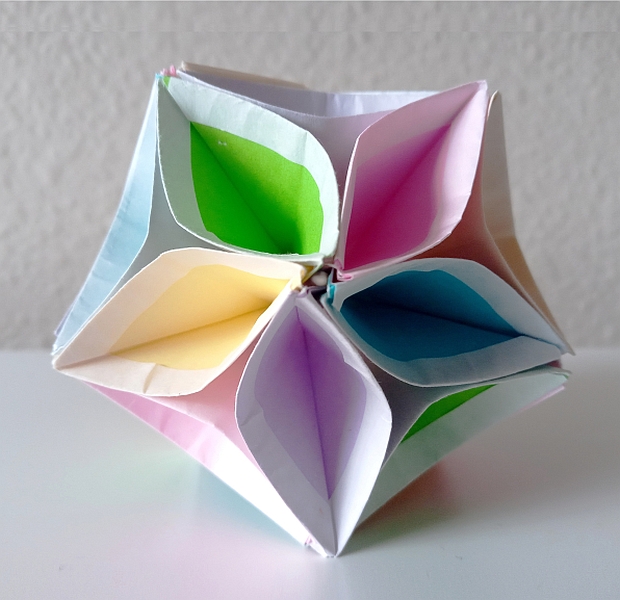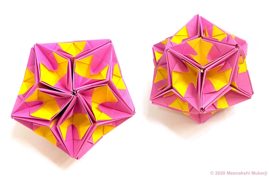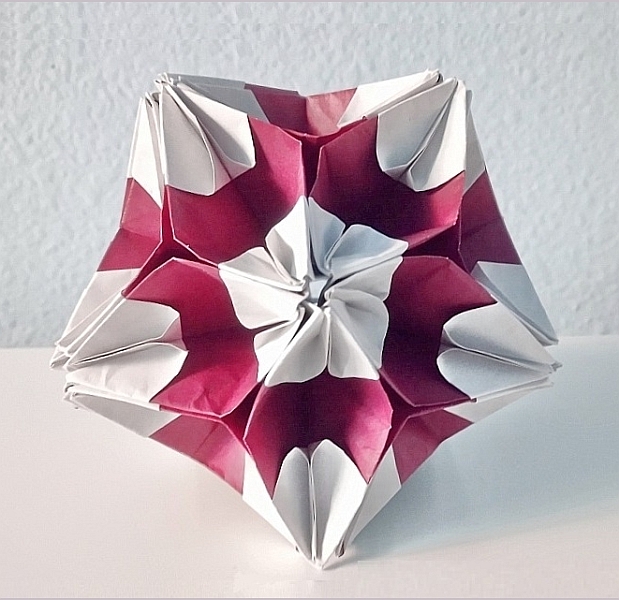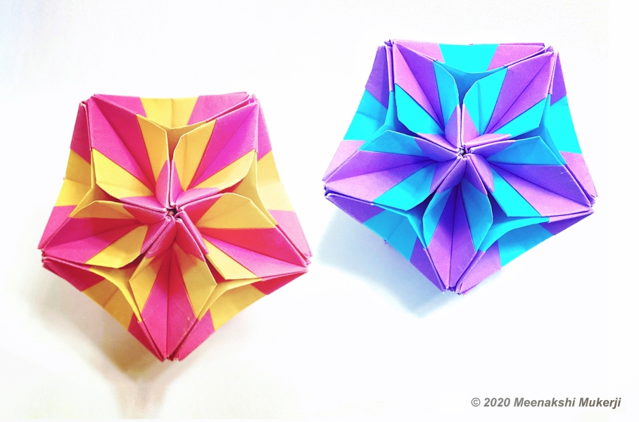 Folding and photo of all three above is by Anjana Vaidyaraman of Seattle. (Note: Minakari is an ancient south Asian art of intricate enamel work on metal. Also, Mandevilla 2 is a minor variation of Mandevilla below with slightly smaller petals.) | ||