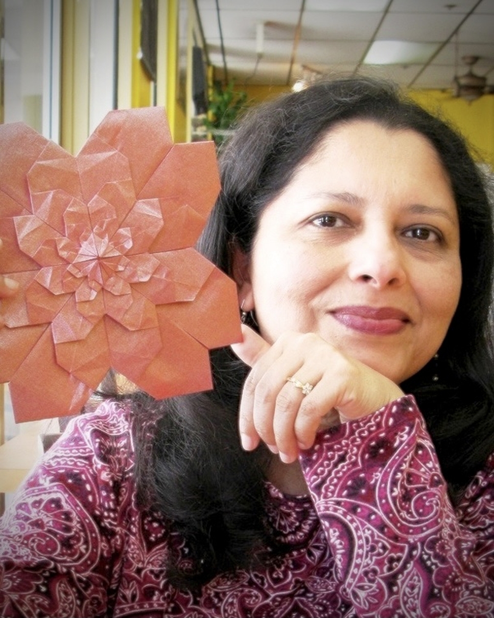In 2005, Origami USA presented her with the Florence Temko award for generously sharing her work on her website. In April 2007, her first book Marvelous Modular Origami was published followed in quick succession by six more books, Ornamental Origami, Origami Inspirations, Exquisite Modular Origami (Volumes 1 and 2), Wondrous One Sheet Origami, and Origami All Kinds. She has been a featured artist and a special guest at various origami conventions both in the USA and abroad. Although known for modular designs, she has designed single sheet origami as well. Meenakshi regularly contributes to various origami periodicals and exhibits her work at conventions and exhibitions. She is a member of Origami USA and British Origami Society and an editor for the former's online magazine The Fold. People who have provided her with much origami encouragement and inspiration are David Petty, Rosalinda Sanchez, Robert Lang, Francis Ow, Rona Gurkewitz, Ravi Apte, Rachel Katz, and the numerous visitors of her website. Born and raised in Kolkata, India, Meenakshi obtained her BS in electrical engineering from the Indian Institute of Technology, Kharagpur, and a MS in computer science from Portland State University, Oregon. She then joined the software industry and worked for more than a decade. She is now at home in California devoting her time to family, traveling, designing origami, authoring origami books and, of course, spreading the joy of origami. (Interview by Origami Spirit )  |
