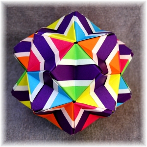30 unit assemblies of my sonobe variations 5 and 4 done with duo kami paper  |